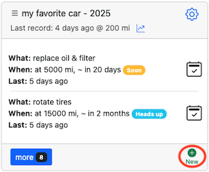 Let’s say few days have gone by, we can add new record with the current mileage, let’s click on “+ New Record”.