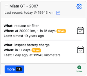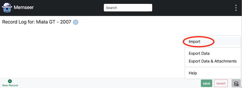 On the bottom right click “Import”, select file (example: Miata GT.json) and in a second you will see the populated records.