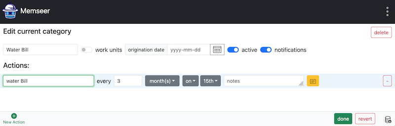 These actions allow for a tight schedule and precise tracking. For example, the water bill might arrive every 3 months: